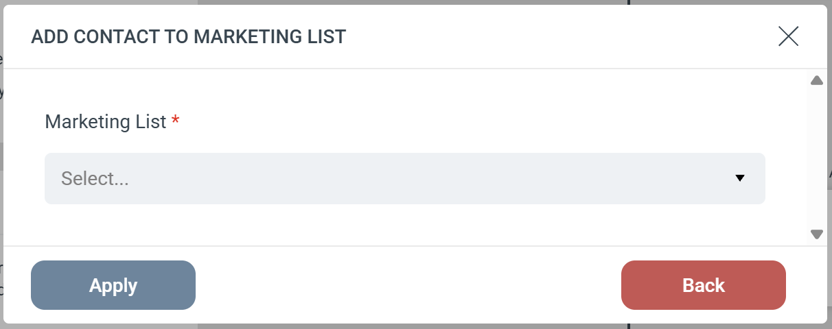 The Add Contact to Marketing List Step automatically adds a person to a designated Marketing List in your Microsoft Dynamics CRM. This action specifically targets Contact records.Step ConfigurationWhen adding this Step to your Journey, you only need to configure one field: