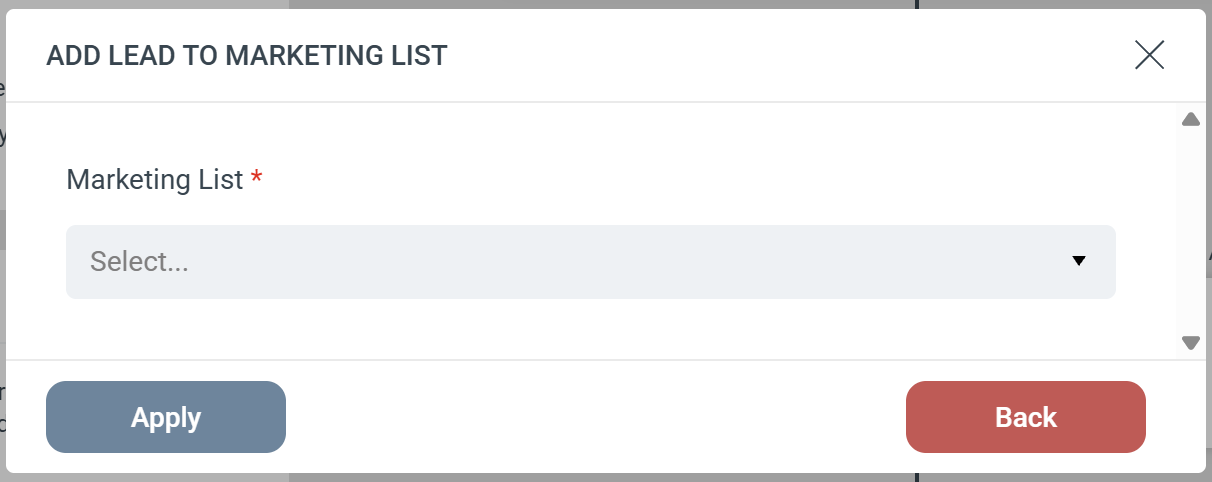 The Add Lead to Marketing List Step automatically adds a person to a designated Marketing List in your Microsoft Dynamics CRM. This action specifically targets Lead records.Step ConfigurationWhen adding this Step to your Journey, you only need to configure one field: